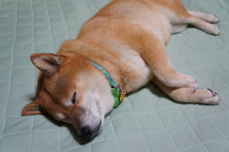 わさびちゃん専用クールマット、今シーズンまだ出番はあるはず~!