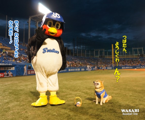 わさびも、勝利の女神さまになれるように 始球式がんばろうね