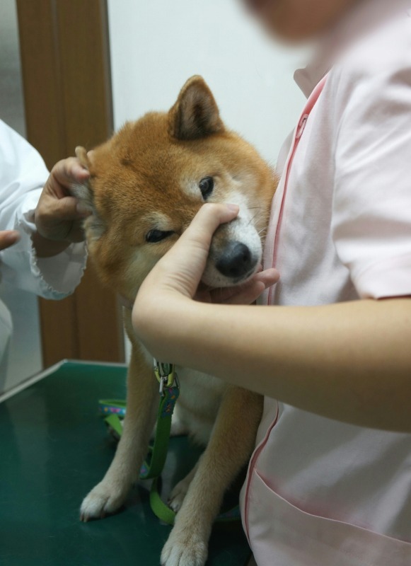 少~し赤くなっていて、軽~い外耳炎とのこと。