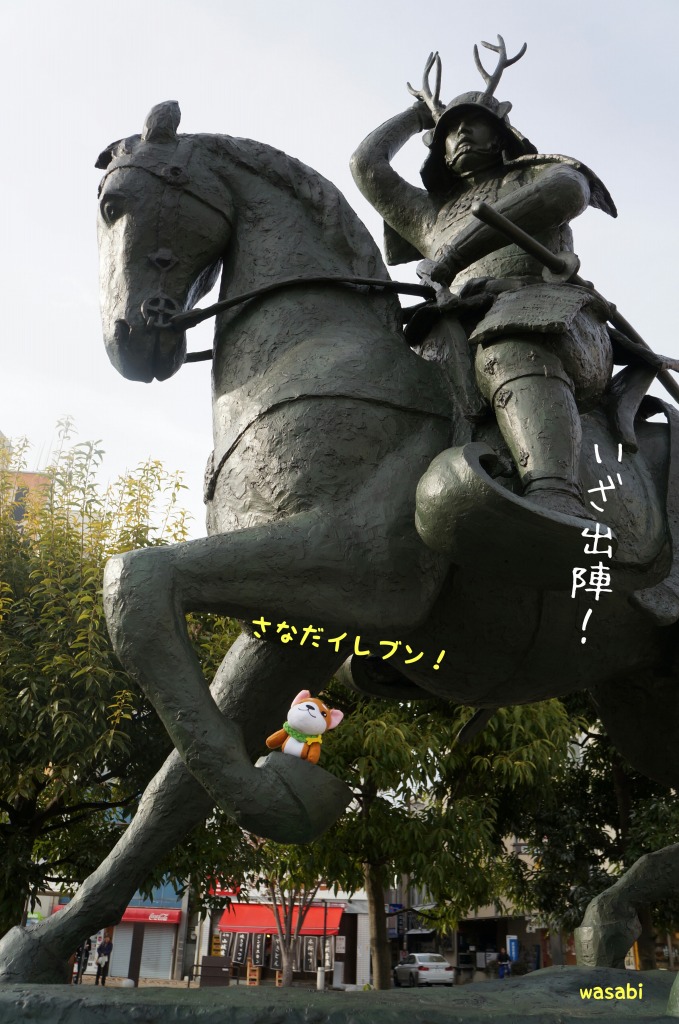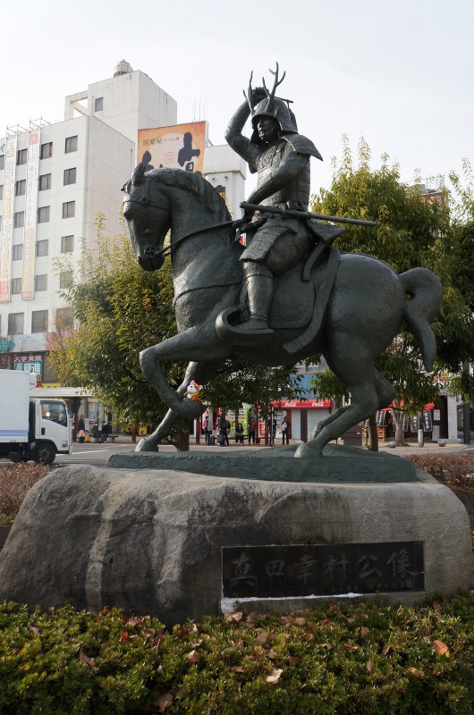 改札をぬけて、駅前の幸村公 騎馬像へ。