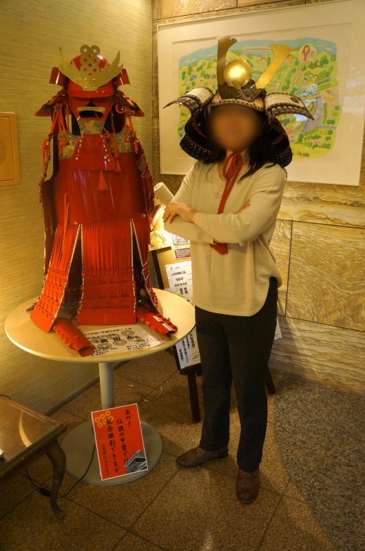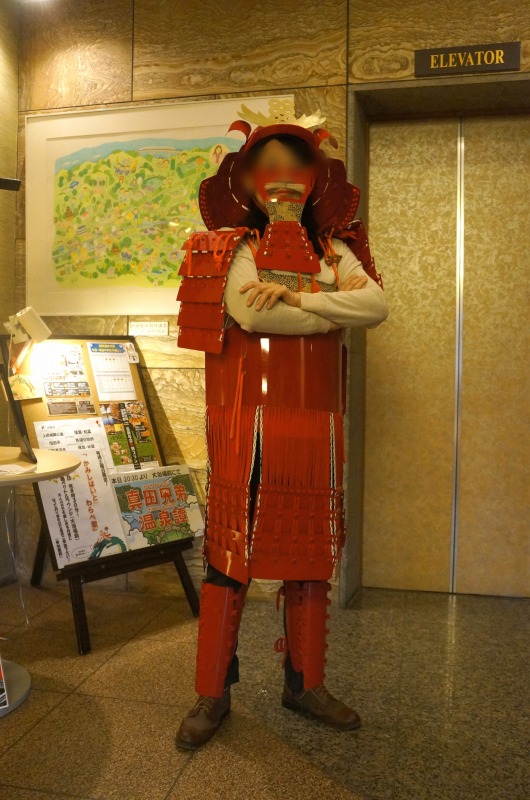 この赤い甲冑(すんごい重い!)をフル装備で着てみますと…