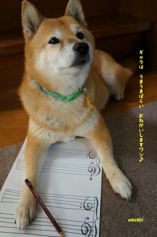 「わさび、ついに作曲家でびゅ しますワン ( ̄ω ̄)