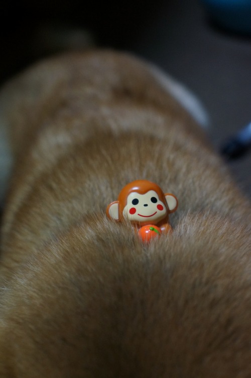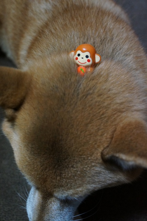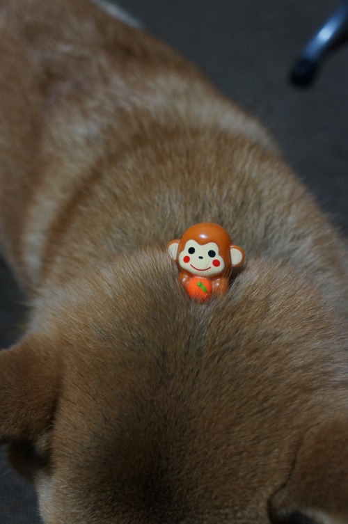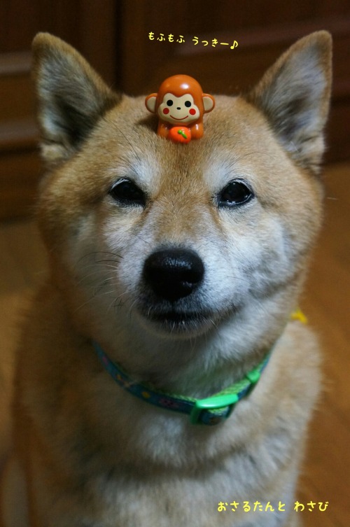 「おさるたん、こんにちワン。なかよし ( ̄ω ̄)」