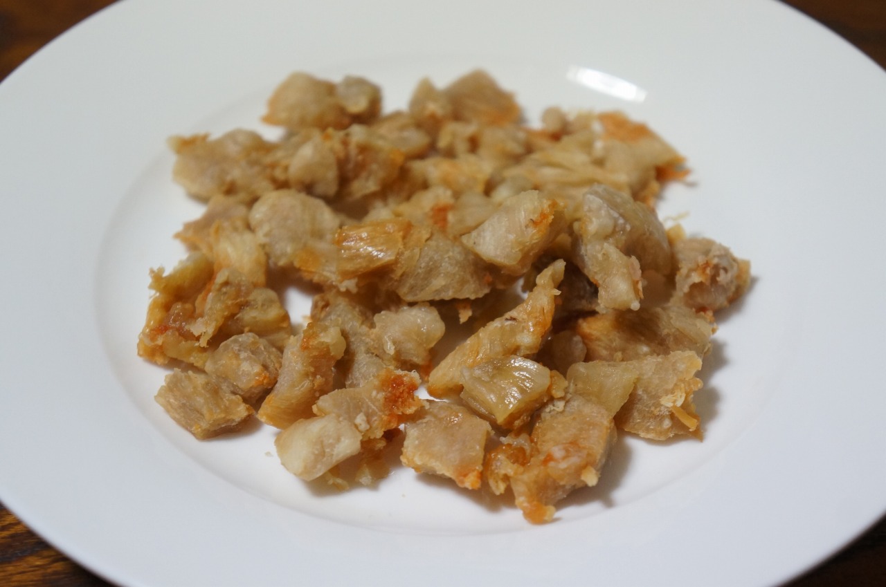 鶏ムネ肉を、そのままカリカリにしただけ。
