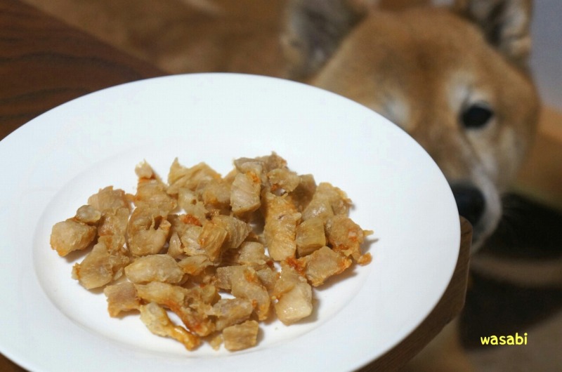 硬めに コリコリしていて おやつとしてはあげやすいかな。