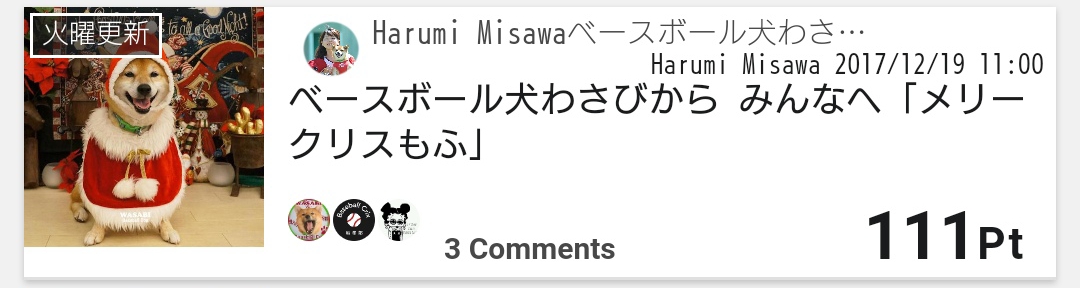 15.ベースボール犬わさびから みんなへ「メリークリスもふ」 | Baseball Crix