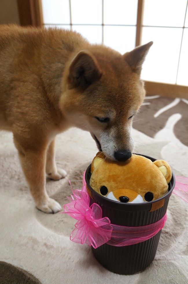 大きい「NEW柴たん」をいっしょうけめいくわえて