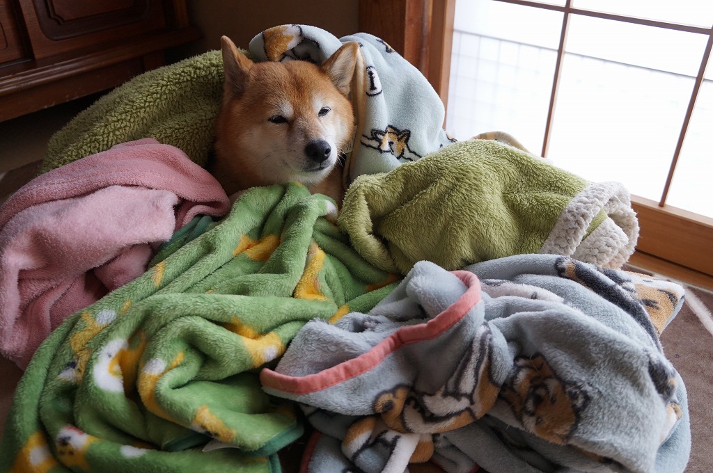 うちは、ご存知のようにたくさんあるわさび様のお布団から