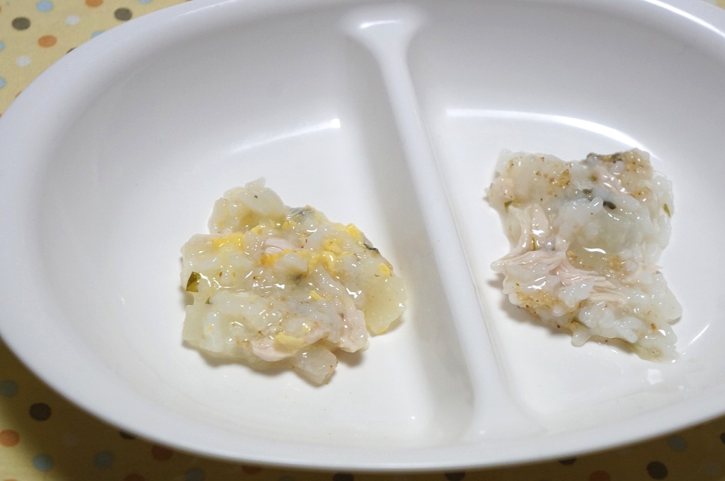 その時にササミや鮭や卵のお粥を作ったらおいしかったらしく…